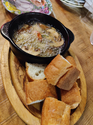 Ahijo (prawns in olive oil with bread) were fine but oil not really infused with prawn flavour. Seats all at bar or side by side at the window: suggest adding chairs with tall backs or sofas for better relaxation...