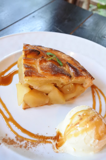アップルパイはバターがしっかり感じられる硬めの生地に、甘さ控えめのリンゴがゴロゴロしていて美味しいの1言 アイスとシナモンも合う