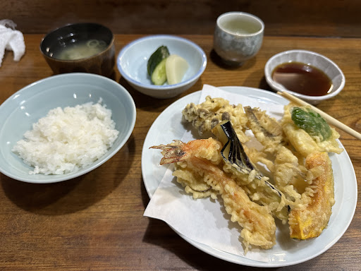 Tempura restaurant owned and cooked by old couple. Open kitchen you see how it is prepared. There varianty of sets you can choose. We ordered tempura set (shrimp, 3 types of fish) goes with rice and salad. I ordered Shrimp bowl that was fried shrimps with rice. It was tasty. Also green tea and small appetizers. Menu on japanise only but lady with translator is super helpful. Great...