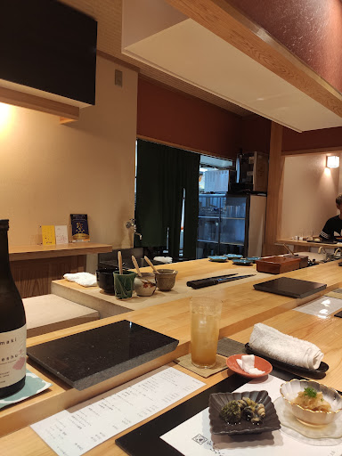Read more【訪問日】2022/8/31夜 【注文したもの】ディナーのおまかせコース(8800円)を頂いた。 【推しポイント】この値段でこのボリュー厶で本格的な江戸前寿司を食べれることに感動。しかもバラエティ豊かな料理を提供してくれて楽しめた。個人的にはいかそうめん、渡り蟹、ウニあたりがとてもおいしかった。カウンターだが気さくな雰囲気で居心地もよかった。 【補足】覚えてる範囲だが以下の通り多種類のメニューを提供してくれた。 ・シャインマスカットの白和え ・いかそうめん…だし醤油にゆずのたれがうまい。上に乗ったゴーヤの細切りもアクセントになってよかった。 ・長崎渡り蟹…シンプルに茹でた渡り蟹だが、肉厚ホロホロでおいしかった。 ・カツオジュレ…カツオの刺身にポン酢とマスタードのジュレがかかってた。 ・ハモの柿の種揚げ…柿の種の衣が意外にも天ぷらの匂い(油の匂いだけで柿の種の匂いしない)だが、食べるとほのかに歌舞伎揚のような香りがしたのと食べると天ぷらよりサクサク感があった。 ・白甘鯛…グリルしてるぽく感じた。肉厚でホロホロしておいしかった。 ・ヒラスズキの蒸し寿司…蒸したヒラスズキが乗った握りに出汁のソースが掛かってて、崩して食べるとお茶漬けぽくなる。 ・金太郎イワシの甘じょっぱ煮…脂が乗ってておいしかった。 ・だだちゃ豆の茶碗蒸し…茶碗蒸しの上にだだちゃ豆の層があり、豆の良い風味がした。中のえびもプリプリしてておいしかった。 ・握り…何らかの鯛、ヤリイカ、何らかの鯛、エビ、うなぎ、夏...