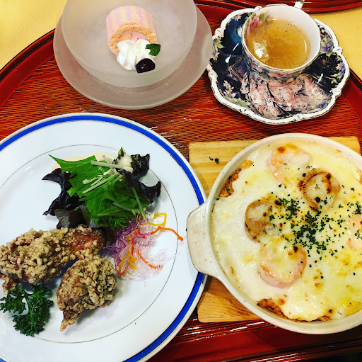 Read moreランチに行きました。この日は シーフードグラタン 鳥の唐揚げ オニオンスープ ケーキ。ワンプレートで一度に出てきます。予約無しの場合...