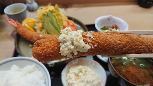 岐阜 白鳥の 海老フライの名店✨ 箸で持ち上げるのに苦労する大きさ👀