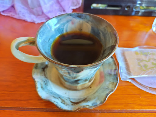 優しいお父さんが出迎えてくれる喫茶店。 岐阜出張。道すがらの喫茶店で休憩。表通りからは分からない。裏手に回ったら薬局と同じ敷地に発見。 中に入ったらテーブルと座敷のどちらにしますかとお父さんに話し掛けられる。座敷と返答。通されたら何と掘りごたつ。コーヒーを頼んだら今から作りますから時間かかりますよとの返答。えっと思っていたら何とミルの音。出されたコーヒーの器も洒落ている。お菓子に煎餅までついている。掘りごたつでのんびり、まったり。たまたま入っただけだがいい店だ。 隣の病院、老健施設に来た方の休憩場所なんだろうな〜と思い...