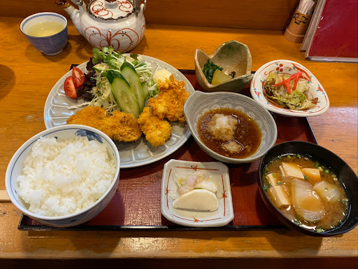 Read more外観や店内が高級和食屋さんの趣だったので雪山帰りでボサボサの格好では入店を躊躇しましたが大将と女将は気さくに迎えてくれました。 店内は私たちだけだったのでカウンターに座らせてもらいお話しながらいただきました。 値段が書いていないメニューがあることにビビりましたが、せっかくなのでお刺身三点盛り、カキフライ、ご飯大盛り、串2本、焼きおにぎりを頼みました。