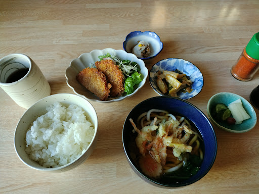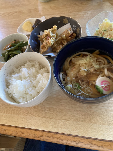 Read moreとても優しく気のいいお母さんの食堂です。 メニューはおまかせです。 ワンコインでビックリです‼️ また行きます。ご一緒の方は常連さんのようで名前で呼ばれていました。 気持ちのやさしい方に行ってもらいたいなと思います。 私が行った時はうどんか味噌汁を選べました。 かき揚げは醤油をつけなくても味付けがしっかりしてあり美味しいです。ポテトサラダも優しい味わ...