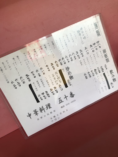 チョコザップの帰りに、以前から行きたくても定休日だったりしたので、ついに念願の五十番にやってきました。 駐車場も隣に4台ぐらい停められるスペースがあり便利です。お店の入り口に当分の間昼間のみ営業します。って張り紙がありました。お持ち帰りもやってます。 店内は歴史を感じるたたずまい、見える限りカウンター席10席?と座敷が4人掛け3つありました。セルフのお水もありますが、車で来なければビールやウーロンハイもあります。また、コーラが180円安い。 まず、はじめに頼んだのは味噌バターコーンラーメンとチャーハンを一品ずつ、またコーラを久しぶりに飲みたいと思い注文しました これで、1300円くらい安い。単品にすれば2人分です。 大盛りにしたければラーメン➕100円お支払いすればできます。他のお客さんのなかには頼んでいる方もいました。仕事中の合間に来る方や、常連、初見、デート中か?カップルと老若男女いて愛されているお店なんだろうなと勝手に感じました。お店は、父親と娘?さんで切り盛りしていそうです。出てくるまでは、焦らず待ちましょうが、多分このお店のマナーでしょう。