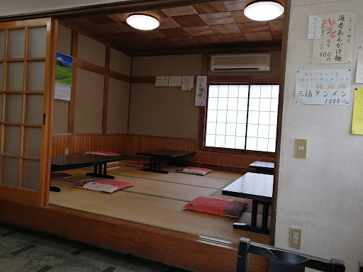 Read more12時ごろ訪問。口開の客と言った感じの入店でした。 ご夫婦で切り盛りされていのでしょうか。注文前に女性が、丁寧にメニューの内容を説明してくださいました。 私は塩ラーメンと半チャーハンのセット+餃子、連れは広東麺を頂きました。 塩ラーメンは、澄んだきれいなスープで仄かに八角の香りのするあっさりとしたお味。 チャーシュー、海苔、ナルト、かいわれ菜がトッピングされていました。 半チャーハンは予想よりボリューミーで、細かく刻まれたピーマン、コロコロとしたチャーシューが入っていました。 広東麺はオイスターソースの香りが効いて熱々です。 餃子はメニューの注意書きにあるように熱々の汁が、、、 皮がもっちりして、焼きめはパリッと、餡はやさしいお味です。 125号バイパスからやや奥まった立地ですので、えっ!こんなところに?という印象は拭えませんが、丁寧な仕事振りとお味で地元の支持を得ているお店という印象でした。 美味しゅうござい...