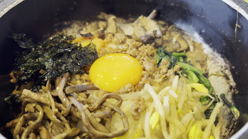 It’s Korean-style BBQ. I ordered a set of bibimbap and my friend ordered a set of mini bibimbap and reimen (cold noodles). To my surprise, they have one coin (500 yen) lunch menu: karaage-don (fried chicken and rice), pork kimchi with rice, pork...