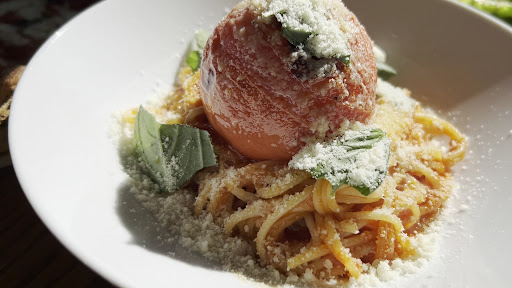 Read moreピザ窯で焼いたトマトを 一個丸々使ったパスタ