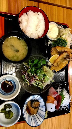 Read more仕事途中のランチで、初めて立ち寄ります。 駅のロータリーにあり、行田駅改札から1分で着きます。 周りには余り飲食店は無く、貴重な食事処。 鯵フライ定食、1,200円を頂きました。 ボリューム満点で美味しかった。 メインの鯵フライも美味しかったですが、刺身が中々良かった。 海が無い埼玉県ですが、刺身旨し。 ナスの煮物も美味しかったですね。 夜は飲み屋でランチタイムも喫煙オッケーなので、...