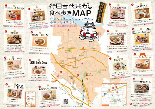 食彩屋やしろさんは国道17号を行田から熊谷方面に走行して、日産プリンスの手前を北に向かい道なりに走行したところにあります。今回は、さきたま古墳・古代米カレー🍛のご紹介です。古代米は古代蓮の展望台付近の田んぼアートにも植えられており、色は赤飯のような紫色をしており、古墳の形で抜かれた形をしています。食彩屋やしろさんのカレー🍛の特長は鶏のから揚げと野菜たっぷりの中辛の欧風カレー🍛になります。お店にカレーを目当てに行っても、イベント時のみの販売になり、提供されません。詳しくは地域情報誌の、とねじんにも掲載され...
