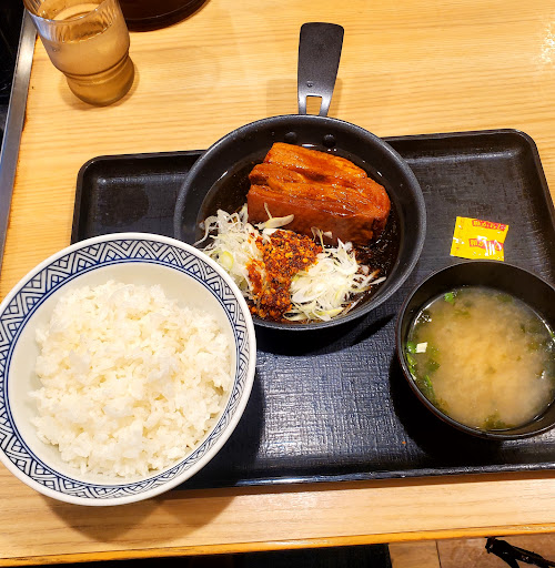 ここの店舗は家族連れで来るとちょっと席が少ないですね。 タブレット注文になっているので、テーブルを近ずけたり移動が出来ないのがネックですね。 厚切り豚角煮定食をいただきました。 これはヤバい!豚角好きにはたまらない角煮は箸で簡単に切れました(* 'ᵕ'...