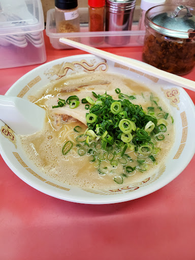 カタでお願いした替え玉は、サクッと歯切れが良く美味しかったですよ~ これこれ~スープに良くあい細麺の歯切れの良い食感がたまりませんでした。 餃子をぱくり、美味しい~とても良くできた餃子です~ラーメン屋さんの餃子ですが立派な主役です。 ごはんに高菜をのっけて、ひとくち食べたら『んっ?』胡椒?うまい! 高菜が想像とはまったく違い、ピリッと唐辛子がきいてると思いきや、胡椒じゃないですかー! 高菜ときたら唐辛子って固定観念ってダメですね~胡椒も良いです、はじめて餃子を酢胡椒で食べた時位感動しました、結構胡椒がきいてて汗がにじみましたが美味しいです。 会計は現金のみですので気をつけて下さい、最近は財布にお金入って無くても平気で買い物や飲食しに行ってしまうので会計時ハラハラする時があります。 あと物価上昇のご時世で値上げも11月から品物によってしてはるみたいです~値上げされてもまだ値打ちのあるラーメンに餃子だと思いました。 とても美味しかったのでまた行きたいと思います、なぜ30年余り行って無かったのか不思議です、やはり食べたいと思ったらすぐに行くべきですね。 次はおでんも頂いてみたいです。 卓上には紅生姜、高菜、ごま、ニンニクチップ、胡椒、...