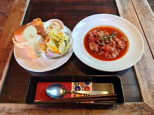 Read moreAランチ(牛バラ肉のトマト煮込み)と手作りシフォンケーキ(プレーン)を食べてみました。 価格は合わせて1400円です。