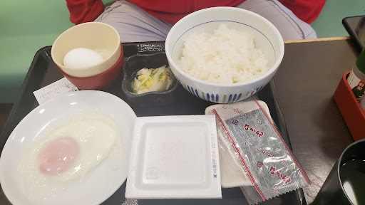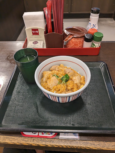Read moreKiosk ordering. There is an English menu. Pay cash or credit at the kiosk. Take a ticket per meal. Bring to table. There were red clips on the table. I think we were supposed to put our tickets in the red clip. Food was brought out right away. We had oyakodon and natto breakfast with extra fried egg. It was good. Place only had older men eating alone. There is a counter too. It was tasty and cheap. Our first ever meal experience in Japan. It was very clean if not an older environment.