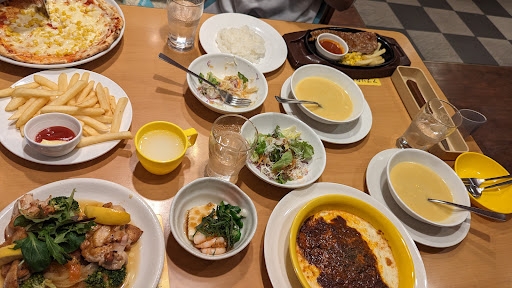 八戸市内にある数店舗の中で、このお店が一番利用しやすいです。久々に行ったら、全面禁煙になっていて、ファミレスながらも分煙してくれていた分、少し残念でしたが、それは今の時代の流れで仕方ないと思います。まだモーニングの時間から入り、ゆっくり食べるのが好きなので、新しくメニュー入りしていたあんことバターのトーストセットを手始めに注文しました。ドリンクバーの機械が新しくなっていて、一般に販売されていない種類のドリンクが楽しめました!トーストも4枚切りの食パンなので、割りとボリュームもありました。私と妹のいつものルーティンである、モーニングが済んだらランチへ移行する際、ずっと以前から頑張っているホールスタッフさんの、穏やかな接客も気に入っています。長時間営業のファミレスらしく、お水やおしぼりも全てセルフなので、人に気を使う必要もなく、気楽に利用できるところもありがたいですね。ファストフード店同様、こちらでも倍バーグを注文できるので、満足感も倍になり、とても美味しく楽しい時間を過ごすことができました。次は肉系の倍フェアメニューも...