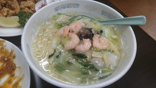 Read more今回は湊高台にある五香(ウーシャン)の「えびらーめん」を食べてきました😋 アッサリ塩味でとても美味しかったです! エビはプリプリ♪野菜はシャキシャキ!タケノコとキクラゲも入っていて具だくさんで美味ですね😋 麺もスープとあんかけに絡みやすい細麺で美味しかったです(≧∇≦)b 時折、生姜の味もして良かったです! スープも美味しかったので1滴残らず飲み干してしまいました(笑) 五目あんかけっていいですね♪ 特に日差しは温かいんだけど風が冷たい今の時期にピッタリの1杯でした👍 店の雰囲気も町中華って感じがして温かみを感じました♪他にも気になる定食やラーメンがあったのでまた食べ...