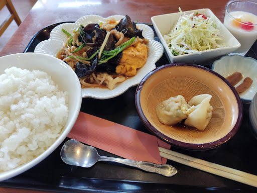 Read more海の日の12時半過ぎに訪問、人気店とのことで混んでるかなぁ~と思いましたか、回転もいいようでテーブル拭いていただいて、すぐ案内していただきました。 私はランチのキクラゲタマゴの定食、妻は同じくランチの五目タンメンとミニチャーハンのセット、プラス焼き餃子を1枚シェアしました。 焼き餃子はメニューにも書いてますが20分ほどかかるとのこと 餃子とほかの注文と提供時間を合わせるか確認していただき、細かい心配りがありがたいです。 キクラゲ卵は町中華のお店の味、期待通りの味でご飯に合う。 漬け物が中国山椒が効いてて、初めての味でした。 サラダのドレッシングは、なんだかコーンのような香ばしさもあり、こちらも初体験(私だけ?)の味でした。 なにより驚きは餃子の大きさ! 皮はモッチリ、肉汁たっぷりでドストライクでした。 噛むとき肉汁がピュッと飛び出すので、要注意です。 妻はあまり好みではなかったようで、好き嫌い分かれるかもしれません。 妻のタンメンのセットのチャーハンもミニとは思えないボリュームで、チャーハン半分ほどと餃子1個は持ち帰りさせていただきました。 デザートに杏仁豆腐も付いてきて、サッパリと締めくくることができました。 店内暑いので、暑がりの方、汗っかきの方は要注意です(厨房の中はホール以上の...
