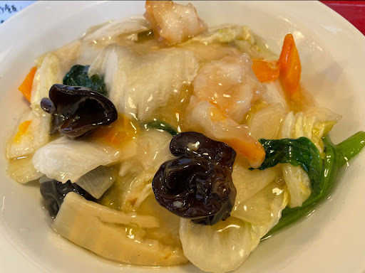 白菜や人参、キクラゲ、タケノコなどの野菜の食感も適度に感じられる。そして、海老のプリプリっとした食感と塩味がマッチしている。 とても美味しかったです。😆😆