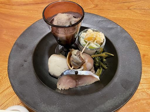 Read more八戸の駅前にある食べログ百名店にもなっている居酒屋さんです。 店内綺麗で落ち着いた空間で、カウンター席とほりごたつ席がありました。 おまかせコースのみで構成されていて、8千円〜予算を伝えておまかせコースを出して下さるスタイルです。今回1万円のコースにして頂きました。 長芋そうめんとうにといくら:シャキシャキの長芋が素麺のように細く切られていて、新鮮なウニがのって最高に美味しい前菜でした! 毛蟹の甲羅揚げ:毛蟹の甲羅に毛蟹の味がほぐされたものが入っていて、上はサクサクの衣で蓋されていました!これが絶品過ぎて最高でした! 八寸:ホヤ、胡瓜の漬物、カラスミと餅の礒部巻き、南部せんべいにふきの味噌を塗ったもの、サザエ、鴨のコンフィでした!ホヤは苦手意識があったのですが新鮮で酸味はほとんどなく、つるんとした食感が美味しかったです。カラスミと餅の礒部巻きは、お餅とカラスミってこんなに合うのか!という贅沢さがありました!鴨のコンフィはホロホロで、南部せんべいはクラッカーのようにも使えるという新発見でした。 お造り:マグロ、あいのめ、サクラマス、ウニで、全て八戸のものでした!マグロはとろける&滑らかで本当に美味しく、ウニも絶品でした。 焼き物:ひめたけと倉石牛でした!倉石牛はサシと赤身のバランスが良く、ひめたけは苦味がなく瑞々しく歯切れも良く最高に美味しかったです! 鍋:穴子の卵とじでした!穴子とふわふわのよもぎ麩が最高で、山椒も効いていて美味しかったです。 ご飯:鯛飯でした。鯛がふわふわで、優しい味の鯛飯です!余った分はおにぎりにしてお持ち帰りにできるというところが良かったです! デザート:抹茶アイスでした!黒蜜がかかっていて美味しかったです。 最高の日本料...