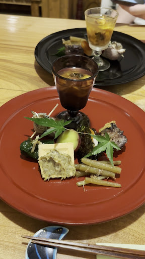 Beautiful little restaurant located in front of the station. The chef offers a wide variety of local nihonshu that he pairs with the dishes and serves in beautiful hand made cups.