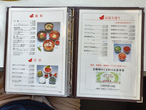 Read moreキンパを頼んだのですが30分経っても来なかったので店員に聞いてみたところ提供するまでに時間がかかると言われ、そこから待っててやっと来たと思ったら、"え?量少な"と内心思いました。1口サイズのキンパが4個、家族と言ったのですが満場一致でみんな少なすぎると言ってましたww高級焼肉店だし仕方ないと思いますがさすがに量が少ないしこれで770円は高すぎだと思いました。正直払いたくありませんでした。 また、店員も覇気がなく網を変えに1回来たのですが声が小さく何を言ってるか聞こえませんでした。全体的に元気がなく、もう少し声を張って欲しいです。 食事を全て食べ終え、背もたれに寄っかかっていてふと下を見たらおそらく自分たちの前に食べていたお客さんのマスクが落ちていたりメニューに米粒が付いていたり不快でした。テーブル上のバッシングだけでなくテーブルの下やメニュー等が置かれているところもしっかり掃除をして欲しいです。