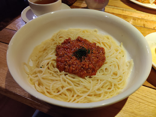 Meat sauce spaghetti: 2.3/5 - Quite Lacking Lasagna: 3.3/5 - Best dish, a bit sweet Corn Soup: 1.5/5 - Bad Homemade Bread: 3.3/5 - Good! French Fries: 2.8/5 - Not bad! Hot Chocolate: 2.4/5 - Standard taste