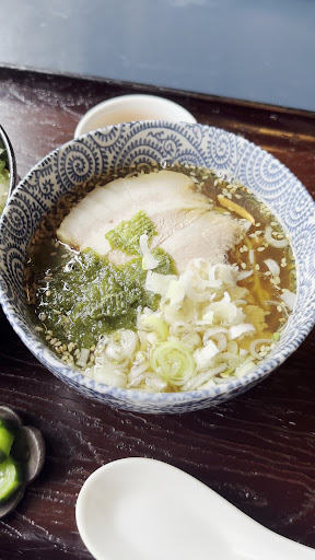 一見シンプルなラーメンですが スープを一口飲んで「美味い…」と呟き 夫と目が合いました。 鶏と煮干しの旨みが効いたスープは 深い味わいがあるけれどアッサリした飲み口で 細縮れ麺と相性が良いです トッピングはネギ、ばら海苔、白ゴマ、 豚と鶏のWチャーシューは柔らかく バランスの良い美味しいラーメンに箸が止まらず 2人共スープまで残さず飲み干してしました 久しぶりに大満足の一杯に出会いました。