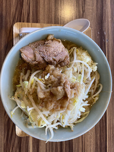 豚まるは四年位前から通っています。 ネットで探して次郎系だということで青森県内で次郎系を進もうとしている拉麺を食べてみたいと思い伺いました。 最初に訪れて先ずは入り口にピンクの豚さん🐷がお出迎え 店内に入るとあちらこちらに置かれている「紅の豚」の写真と豚🐷のぬいぐるみ。(移転する前の様子で、今は以前の様には飾られていません) カウンターに座り、キッチンの中で麺の茹で汁を切りながら奮闘しているおそらく店主だと思いますが、とても丁寧な仕事ぶりにとても感動しました。 どんぶりに麺を茹でるお湯を入れて温めてくれるので熱々の拉麺が手元に届きます。 その作業は当たり前の様に思いますが、それをやる店はほぼ見たことがありませんでした。 食材とラーメン作りを食べる側に立つこだわりを提供しているお店の印象でした。ニンニクは田子ニンニクを使っていたり等、食材にもこだわってラーメン作りをしているのもポイントアップです。 約10分ほどすると、どんぶりの上には山盛りの野菜、その上にはたっぷりの刻みの田子ニンニク、そして大きくぶ厚く切ったチャーシューが二枚も❗ 後日、脂多目を注文しましたがこれもまた良い❗ 私的には見た目でグッとテンションが上がりました🎵お勧めです。 麺の量、野菜、脂は無料でチョイス出来るので大変ありがたい設定に成っています😋 食べる前からテンションが上がりまくりです スープは濃厚ですが豚骨のアクを丁寧に取り除いて作ったんだろうと思わせるしつこくなく雑味の少ないすいすいと喉を通っていく醤油味。おそらく鳥ガラ、煮干し、昆布も使用して作ってるんだろうと勝手に想像しています🎶 麺は伸びにくくしっかり腰の有る中太麺 味の濃さは好みで卓上にカラメを用意してくれています。 「絶対に食べてみないと🎵」とお勧めするラーメン屋さんです 行って後悔の無いラーメン屋さんです❗と言うか探しても納得出来ないラーメン屋さんにばかりあたっている方は是非とも一度食べて見て下さい📢 私自身、ラーメンは相当食べまくって40年ですが、此処は間...