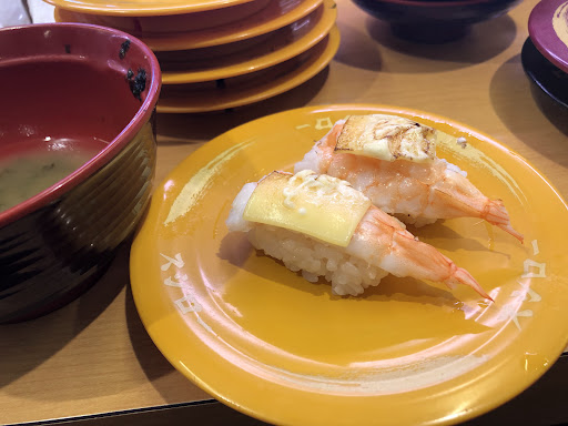 Love the selection of sushi and sides! It's way different than what we get in Misawa City. The scale of this place is like putting Hama Sushi and Kappa Sushi together under one roof. The dense parking situation on weekends might dissuade some casual gaijins. Haven't been here on a bad day, but I imagine getting here well into the lunch rush hour meant the fish and rice stayed fresh and in rotation, and nothing was too cold and stuff (cough-Hama-choo). The non-standard selections like deep fried quail egg and salmon with cheese & basil were amazing. The delivery belt is a stroke of genius, cuz it slides into an exit ramp that leads right to your seat. This prevents some oblivious chum from holding up the entire line because they're too absorbed in their phone to notice their order up.