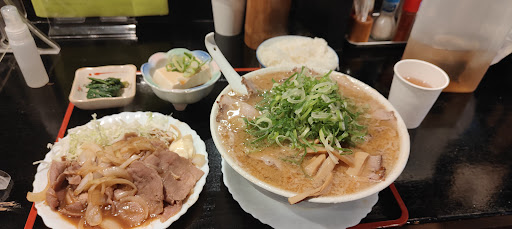 隠れ家のような、ラーメンがメインと思われる居酒屋。 今回注文した「焼き肉定食」と、安く追加できる味噌ラーメンとチャーシュー*2を注文。