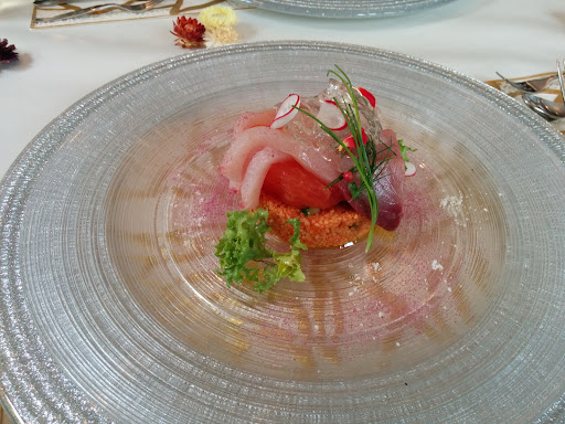 Read more友人とランチ。仕入れの関係で、予めメニューを伝えての来店が基本とのことです。店内はゆったりとした席取り。食器やテーブルに置かれたお花もとてもセンスよく、素敵な空間でした。創作のお料理はどれも目新しく、楽しくいただけました。接客もとても丁寧で、着席時にシェフが挨拶に来てくれ、退店時もお店の外まで見送ってくださって感動しました!お店自体は素晴らしいのですが、12時openだと子ども達の降園、下校の時間が近く少し慌ててしまったので、個人的に11:30openだとありがた...
