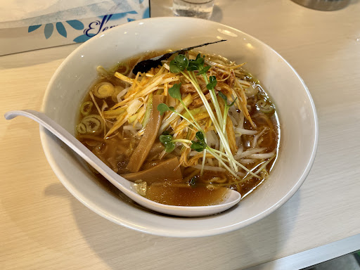 トッピングの細切りチャーシューは柔らかく美味い。白髪ネギは程々の辛味があり美味しいです。 めんまはコリっとした食感です。