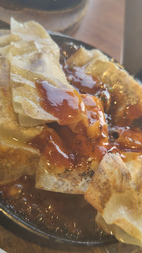 鉄板餃子は餃子と言うより、皮に挟む感じで 中の餡は餃子の餡の味付け❗️ 鉄板で熱々でしたが、餡掛けの醤油ベースのソースで味付けが、ちょっと飽きて来るって感じ👍️ 味変も出来ないから、ちょっと改良が必要かなぁ 普通の餃子にすれば良かったかなぁ⁉️