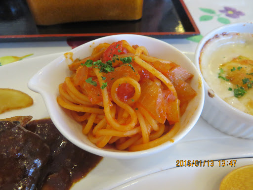 Read more窓が広く柔らかい光が差し込んでいて温かく隣の運動公園の景色が見えてゆっくり時間が通り過ぎます。運ばれてきた「さざんかプレート」は、ハンバーグ、オムライス、ナポリタン、グラタンのお得感のあるセットです。ベジビュッフェは、野菜やフルーツのバイキングなのですが、10人位の団体さん?のあとは。。。 なので食べるにはタイミングが大事ですね。(笑) 本日一番のビックリは、親子丼は甘いのが好きなんですが、こんなに甘い親子丼を初めたのは生まれてはじめででした。まるでデ...