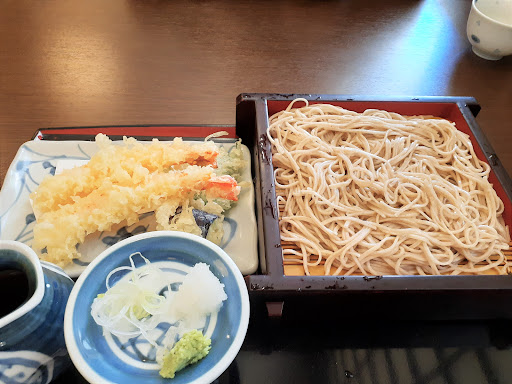 込み合っていたこともあり20分少々待ち商品が到着しました。 提供された天せいろそばは、やや柔らかめで汁も至って普通です。 天ぷらは揚げたてでサクッとしていて美味しかった、海老が2本とナスと大葉の天ぷらが付いて 1280円ならコスパ的には特段悪くはないかな?