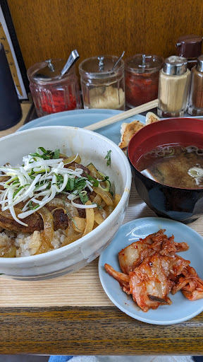 Read more初めて行きました😊カウンターだけの店内で大将がお一人で回してらっしゃいました。お昼時でしたが、たまたますぐに入れました。 私は、日替りランチの和風ハンバーグ丼(味噌汁、キムチ付)と手作り餃子を注文しました。餃子は小ぶりで、中は熱々でジューシー、丼が来る前に半分くらい食べちゃいました😊ハンバーグ丼もネギ、玉ねぎ、ホンシメジなどがたっぷりのっていて美味しかったです。 カウンター越しに、お料理が出てくるのが私的に新鮮で良かった🤭 帰る頃に、サラリーマン風の方々が数人入ってきて賑やかになりました。 次はラーメン、餃...
