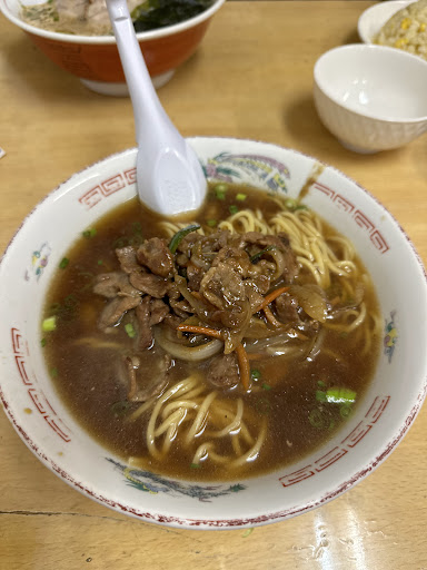 長く続くにはなにか訳がある。 今回はチャーシューメンと焼肉ラーメン、餃子、チャーハンを注文。 チャーシューメンは醤油ベースですが、味噌、塩、豚骨へのチェンジも可能だそうです。(追加料金かかるスープもあります) 焼肉ラーメンは気になって注文。果たしてどんなビジュアルでどんなものが来るのか……