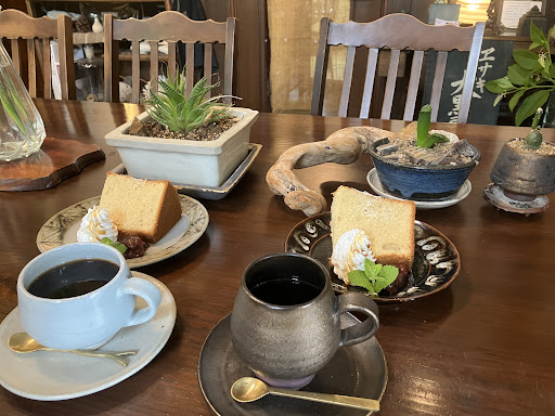 Read more国道を運転中に建物が目に留まったので立ち寄らせていただきました。 落ち着いた雰囲気の店内、店長手作りの器、コクのある深みのコーヒーでいただくシフォンケーキで楽しい時間を過ごさせていただきました! 2階の梁のあ...