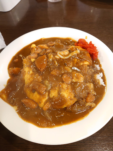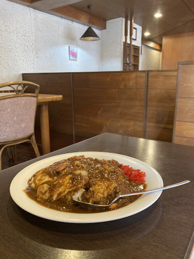 暇を持て余して訪れた萩で突然お昼にカレーが食べたくなって検索して寄らせてもらいました。 店内は昔ながらの純喫茶店風で何故か落ち着きます。 メニューもシンプルでカレーとピラフ、スパゲティとサラダで構成されていて分かりやすかったです。 老舗の喫茶店らしくジャズが心地よく流れる中、取り敢えずカレーのスペシャル(1000円)を注文しました。 シーフードと輪切りにされたウインナーとスクランブルエッグの様な卵が入っていました。 改めて思うと不思議な組み合わせだ。 何と表現すればよいのだろうか。 お家カレーでは絶対ないのだけれどインドのスパイスカレーでもないし欧風カレーでもない。 若干の苦味と酸味も良い塩梅で何故か懐かしい味でした。 昨今、やたらと店主の拘りだとか主張が激しいお店が多いがそんな物は微塵と見せない老舗のカレーに満足しました。 個人的に残念と思った点はご時世柄仕方無いのだが店内が禁煙という事だ。 あのカレーを食べた後に煙草が吸いたかった。 私がコーヒーを嗜めない人間なので仕方無いのだが、人生の先輩の名言である「カレーを食べた後に吸うタバコとコーヒーはセットである」の教えが出来ない。 それを引いても次の機会にはピラフやスパゲティーも食べてみたいなと思わせていただけるお店でした。 行儀が悪いけれども何人かで寄らせていただいてシェアさせていただけると楽しいだろうな〜と思いながらも基本的にソロ活なので残念です。 しかし萩の外れで長年営業されているお店を知れたこ事は宝物になりました。 ま...