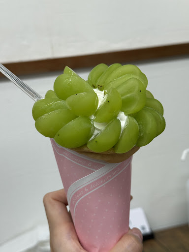 萩に初めて来た際に伺いました♪ 期間限定のメニューが年間表❓で張り出されていてとても選びやすかったです✨ 今回10月だったのでさつまいものクレープかシャインマスカットのクレープで悩んでいたところお店の方におすすめを聞いたらシャインマスカットのほうを勧めてもらったのでシャインマスカットクレープにしました💖 雪崩てしまいそうなほどモリモリにシャインマスカットが盛られており、生クリームもカスタードクリームもたっぷりですっごく美味しかったです💕💕 1番好きなタイプの生クリームでした!あと、生地もモチモチで最後まで飽きずに美味しくいただけました♪ チョコバナナクレープも美味しそうだった✨ また季節限定メニューも色々試してみたい〜🔥
