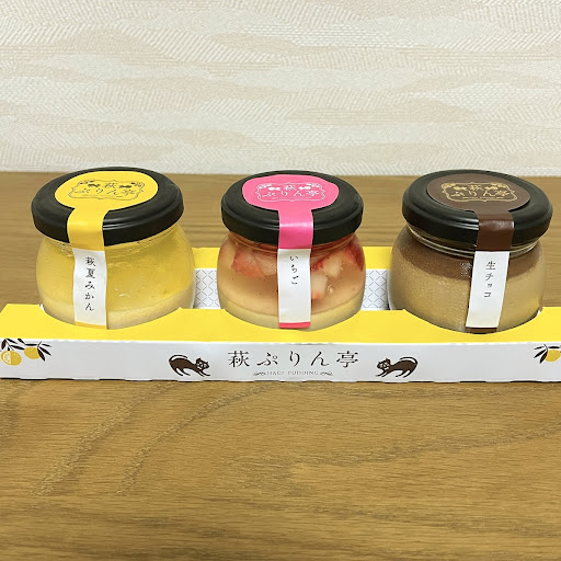 Read moreお店の雰囲気◎・駐車場◎・味○ コスパ△・スタッフ× 場所も分かりやすく、お店の雰囲気もシンプルな所が城下町に馴染んでいて良かったです。駐車場が広めなのも助かります。 肝心のお味は、なめらかプリンは普通に美味しかったです。 でも感動するって程では無いので…お値段とつり合っていないなと感じました。 プリンの上にゼリーが乗っている物は、 どの味もプリンと合わない。 迷いまくってお互いの良さを発揮出来ていない様に感じました。 私は自宅用とギフト用を購入したのですが。 他の方がクチコミで書かれていた通り。 持ち歩きの時間を聞かれませんでした。 訪れたのは7月だったので、保冷バックを持参していなかったら…きっと高いプリンがダメになっていたでしょう。 以前、指摘されているのに改善は無いのだな。と感じました。 ギフト用のボックスと紙袋が高すぎる。 200円。プリンの半分のお値段です。 そして。スタッフの方が無知識なのも問題だと思います。 何を聞いても、知らぬ存ぜぬ。終いにはブスっとふてくされている様子でした。 お店は、萩の城下町にあるのに城下町の事を知らなすぎると言うのはどうかと…? 渚プリンの青色の原材料が気になったので、スタッフに訪ねてみると。何も答えない。 聞こえていないのかと、もう一度訪ねると。 さぁ…?とボソリ。 自分が売っている商品の原材料くらい把握し...