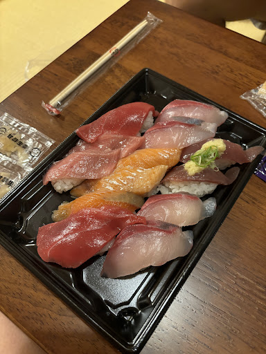 Great Fresh Deliscious Sushi but not quite as good as Kura Sushi. One can't help comparing with the similarly priced (most sushi is 100 yen in both establishments) chain, Kura Sushi. Whereas Kura Sushi makes me forget that it is just as inexpensive, Sushirou feels like the 100 yen shop, the Daisou, of Sushirou restaurants. One of the biggest differences is that in Kura Sushi there are three conveyor belts: one for revolving sushi, another for orders placed using the tablet based menu device, and a third hidden under table level below the sushi belts to collect used plates. The former conveyor belt has the ability to stop until you remove your order. In Sushiro however there is only one conveyor belt, both for sushi that keeps revolving and for customer orders. This means that a recorded female voice informs you that your order will soon arrive, but if you fail to pick it up, your order will pass by, until it comes around again, merged as it is with the constant flow of revolving sushi. The lack of a bespoke conveyor for orders results in a busy, somewhat stressful experience for the people sitting next to the conveyor. There is no hidden conveyor system to deposit used plates; the flimsier Sushirou plates remain in piles on the table. Sushirou sushi "neta" (fish etc. on the rice) is at times smaller but no less delicious. Sushirou plates contain RFID chips, I think, so the staff can count them at the end of the meal by waving their hand-held cash-register console over them. I enjoyed the satsuma (mikan) sherbet in a satsuma shaped, lidded plastic bowl. We booked a table using the Sushirou app. There are no clear plastic partitions separating table alcoves but the seats are fairly high-backed. We will go to Sushiro again but only in towns like Hagi, not in towns where we have the option of enjoying the other 100 yen sushi restauant chain. That said, the comparison and Sushirou experience is Japanesely fun, so I recommend that visitors to Japan try both...