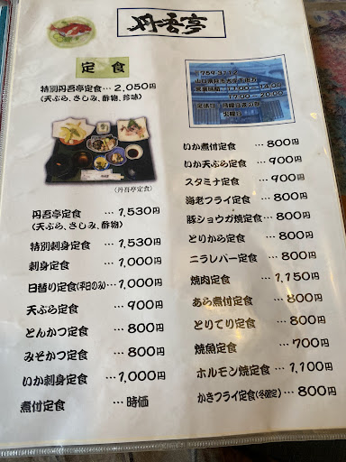 津和野に旅行に行って旅館で翌日の昼食どこで食べようかと調べて丹吾亭さんに伺いました。山の中の狭い道を通りながら約50分ちょうど11時の開店時間に到着したら4組開店を待たれていましたがすぐにテーブル席に座れました。テーブルやカウンター、座敷合わせると20〜30名は入れるお店です。ただスタッフの方からの案内がないまま順番に自分達で着席する事になります。私達は特別刺身定食1680円を注文しました。5分から10分で配膳され、調べていた通りの舟盛が来てビックリしました。ボリュームが凄い‼️ さぁお味の方は?これまた感動しました。内容はサザエ、カツオ、カンパチ、タイ、タコ、イカの刺身がどれも新鮮で臭みは全くの皆無でした。私達は生魚の臭みが苦手なので舌はかなり敏感な方ですが全く臭みはありませんでした。ご飯もお味噌汁も美味しかったです。刺身醤油がこれまた甘くて美味しかったですよ。次から次へとお客さんが来てました。自宅からすぐに行けるお店なら教えたくないので書き込みしなかったかな😅 他のメニューも見ましたがどれも魅力ある価格でした。関係ない事かもしれませんが店内は有線だと思うのですが1980年代の懐かしい曲が流れてて、また雰囲気良かったです。 駐車場は店の前に4台、隣のエネオスのガススタの向かい側に10数台スペースがあったと思います。また行きたいお店ですがちと距離があるので付近に来た時は必ず行きます😊 久しぶりに💯満点以上のお店...