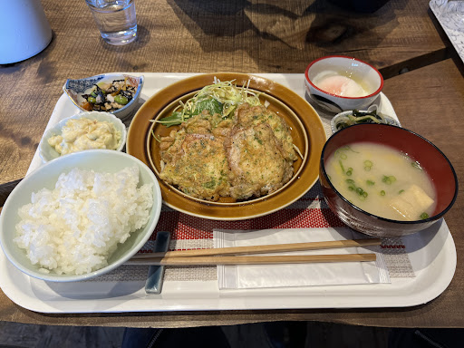 Read more今日は初めて親友と出かけたのですが、商店街を突き抜けて左手にあり、とってもおしゃれなご飯屋さんでした。サービスを4にしたのは人気がありすぎて、お客さんが次々来るんだけど、いい方悪ければ、1人のお客さんが大きなテーブルを使っていて、私がオーナーだったら絶対にカウンター席を作るかソファーのほうに1人のお客さんを座らせて並べるかするかなぁってちょっと思ったんだけど人が入れずに帰るっていうのが2回ありました😓予約をしてもちょっと並んでる人からしたら申し訳ない感じになるかも。料理はめちゃくちゃ美味しくて、今ダイエット中なのでご飯の量もこれぐらいでよかったです日替わりの甘酢鶏肉を食べたのですが、めちゃくちゃ柔らかくておいしかったけど、友達が食べてる生姜焼きがもっと美味しくて交換してって言ったけどだめでした笑笑正直どれも1000円位で3つでも食べれそうな感じがした定食がボリュームがないとかそういう問題じゃなくてほんとに味付けがどっちもおいしかったです。まだ食べてないメニューがあ...