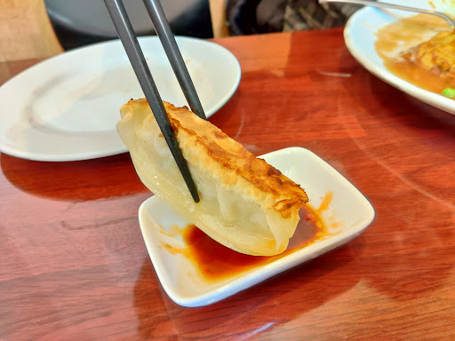 前回食べた えび炒飯もえびみそラーメンも濃厚なえびの味がガツンときてえび好きにはたまらないお品です スープは胡麻油薫るワカメスープです 天津飯は具たっぷりの天津に醤油ベースの餡 餃子は豚肉の味が濃かったです 大きくてモチモチ系 もう...