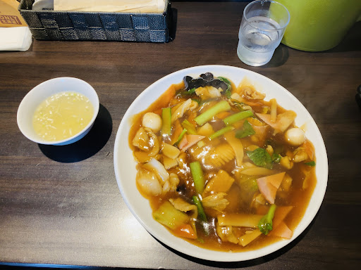 妻と二人でよく食べに来ています。おすすめはあんかけ焼きそばとチャーハンです。 あんかけ焼きそばは醤油あんの五目焼きそばと海老塩あんかけ焼きそばの二種類があります。どちらも美味しいですが私は海老塩あんかけ焼きそばがイチオシです。シンプルな旨味で濁りのない透明な塩あんはとろみぐあいも強めで、香ばしく焼いたモチモチの麺にバッチリ絡んで最高に美味しいです。プリプリ海老と野菜、タケノコにキクラゲにハムと具材もたっぷりで飽きのこない逸品ですね。