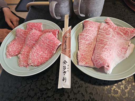 Read moreReservation required, no walk-ins as it’s a small business with few staff. We managed to get a next day lunch booking as we travelled in late Aug (non peak period). Didn’t see the 1,500¥ lunch special other people talked about. We ordered 2 set menus - 100g of A5 sirloin 6,000¥ and A3 sirloin 4,800¥, both come with tea, yuzu sorbet, vegetables, choice of udon noodles/ rice. You can taste the difference in the cut of the meat quality with the price difference. Personally A3 is very tasty already. Service is excellent, they prepare the sukiyaki for you. No AC, can be very hot / humid in summer. Our bill with drinks came...