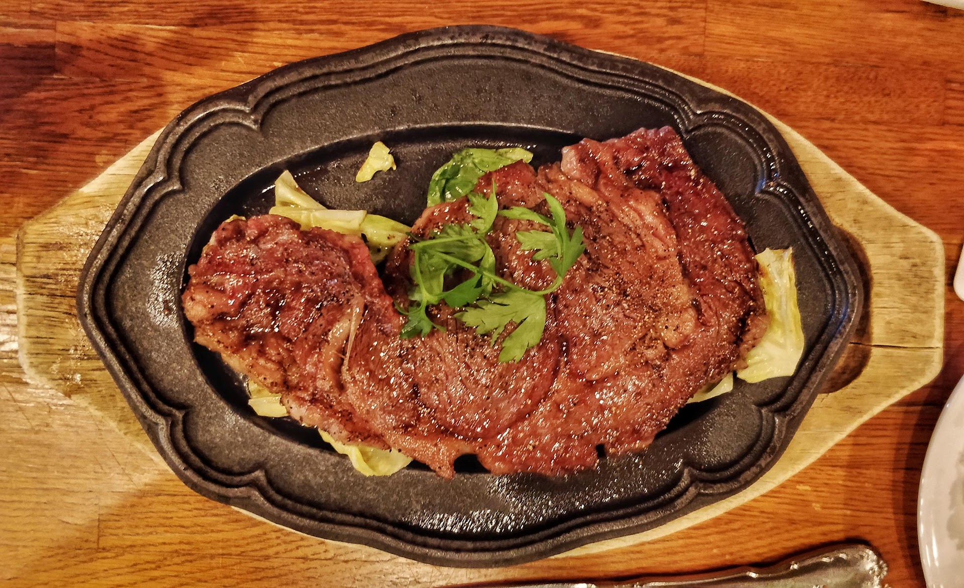 Read moreDefinately has a more western or European vibe as it is a beer hall - staff are courteous and very polite. A lot of food options such as steak, sausages, sashimi, or even nabe! I ordered the premium Hokkaido steak - came on a hot plate over a bed of cabbage, with a side of rice and their in house brewed premium beer. Steak was delicious! Extremely flavourful, tender with the right amount of texture, cooked just right considering how thin the Japanese style steak was. The cabbage was sweet and like the steak it was seasoned just right. The beer - it was good, light but very pallettable. Not a bad place to go if looking for some beer, pub food or something less...