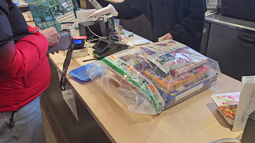 The front end of the shop was eatery, and the back end was souvenirs. For the souvenirs, we got tax-free after exceeding 5400 yen. Then, the cashier will seal all tax-free items in a plastic bag and scan our passport. We were told not to open the plastic bag until we left Japan. If we checked in our baggage, then we need to inform the airport staff about these tax-free items.